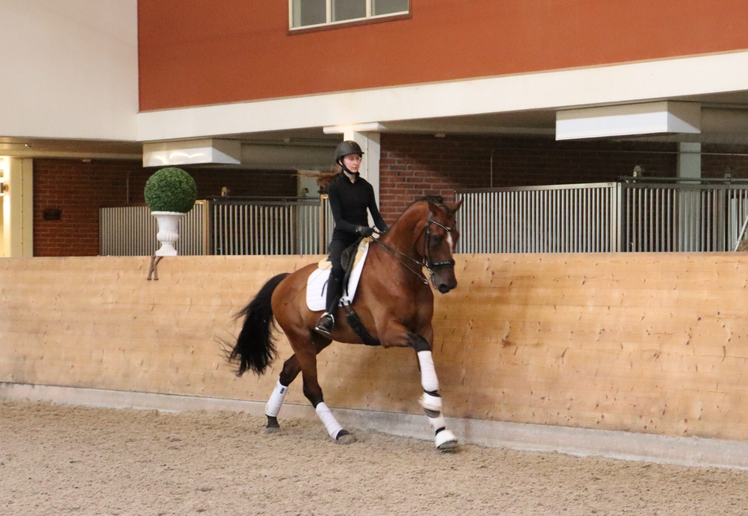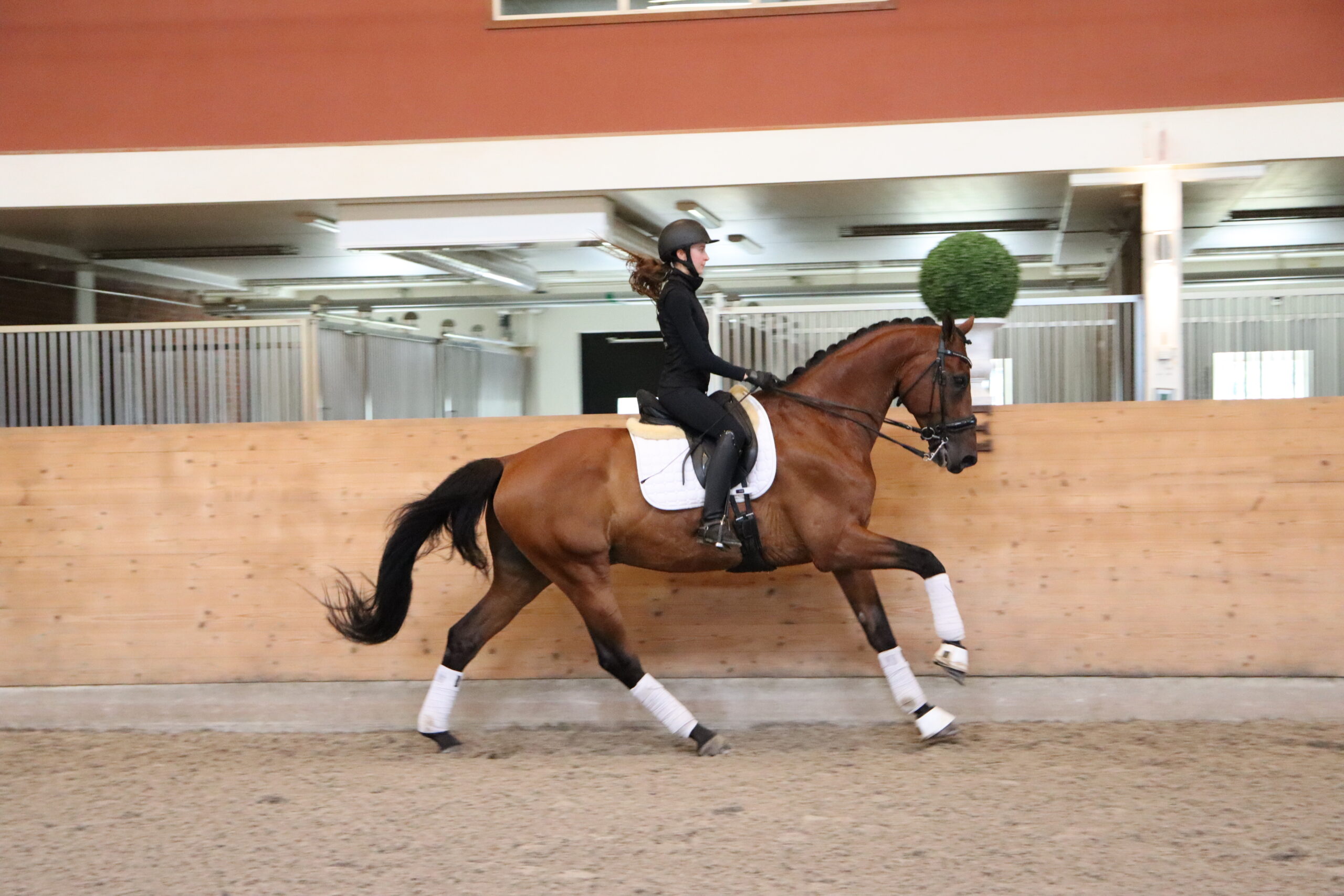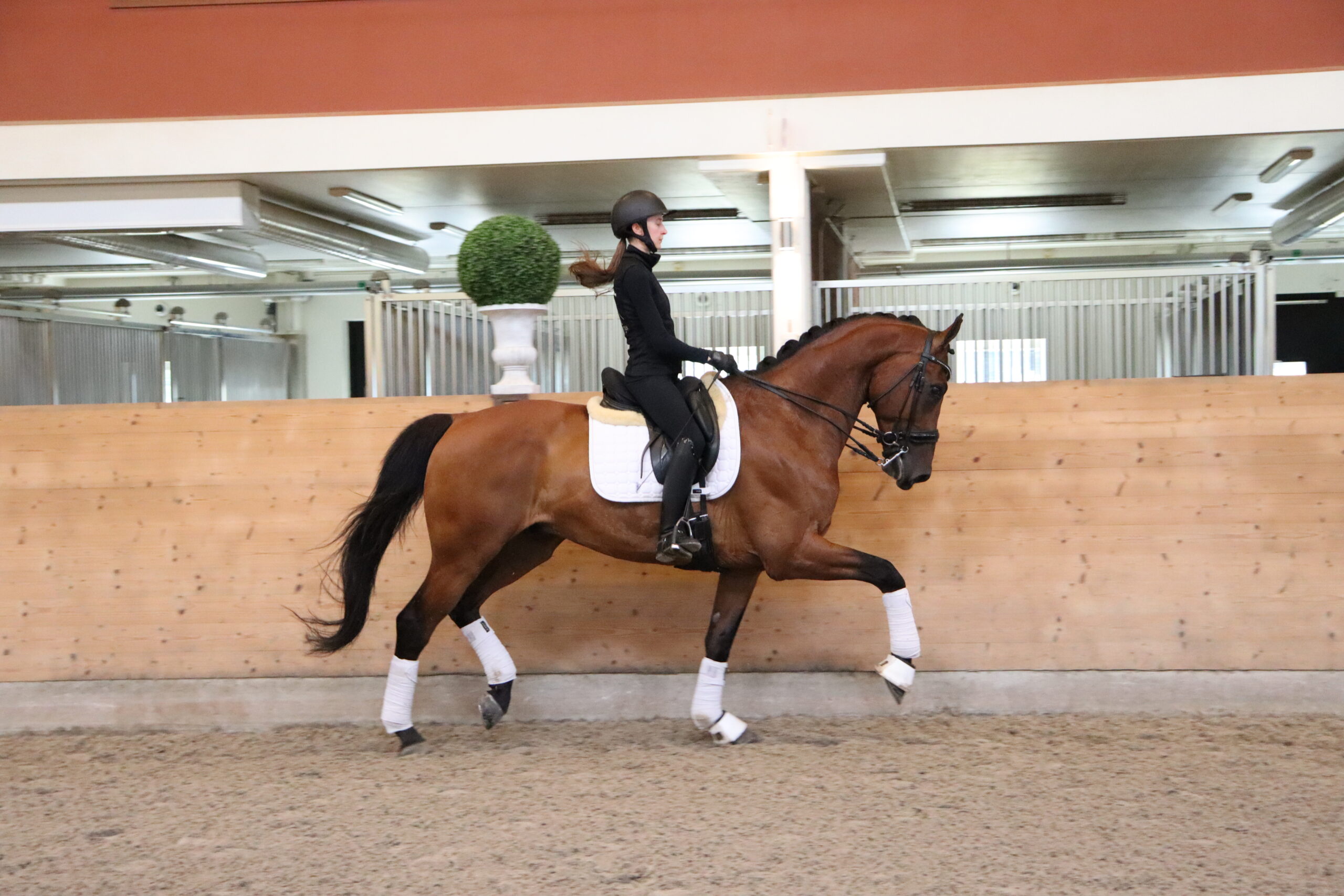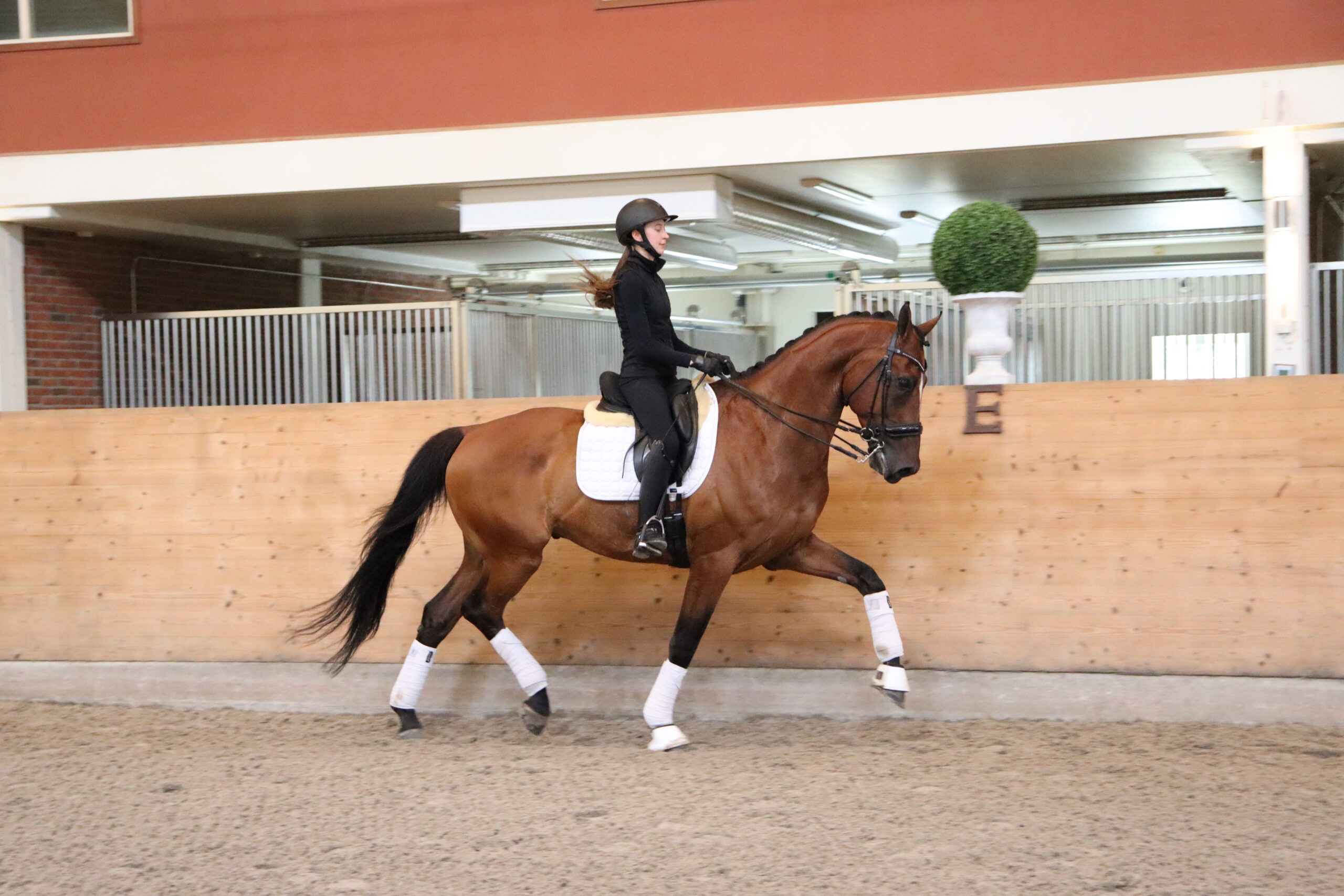 Han har tre jämna bra gångarter och är en superfin läromästare som är väldigt säker i sina bytesserier ända ner till ettorna! Han tävlar just nu i lilla rundan men tränar mot GP. Detta är en perfekt junior/young rider häst som även mycket sannolikt kan gå U25 med rätt ryttare.