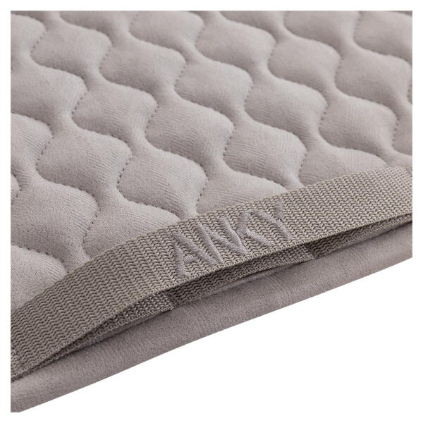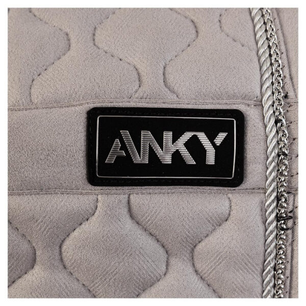 This elegant ANKY® saddle pad stands out for its silky smooth exterior with delicate embossment and diamond-shaped stepping. In addition, the continuous cord pipings, one of which is shiny silver, contribute to the eye-catching effect of this ANKY® pad.