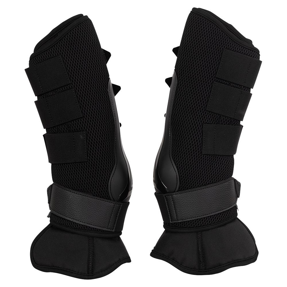 On the outside there is a hard shell of PU to protect the tendons. The protectors are closable with sturdy Velcro fasteners with double-layer elastic, one of which is extra-long. The inner lining has softly covered seams to make it feel extra comfortable on the horse’s skin and the lining can be removed with Velcro so the lining can be washed separately.