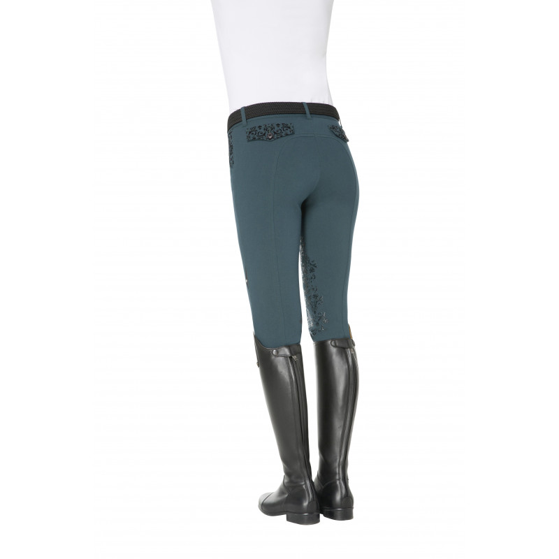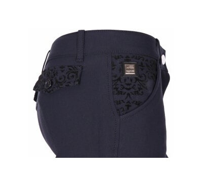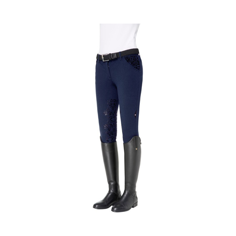 Marika damridbyxa är en ny, skön supergripskodd ridbyxa från Italienska Equiline! Equiline Marica helskodda ridbyxa är av Bostonmodell och har fyra fickor med vackert sirligt mönster ton-i-ton på de marinblå ridbyxorna samt elastiskt benavslut.